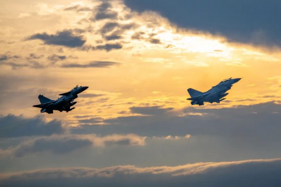 傍晚,官兵们进行起飞前的各项准备。随着塔台指令下达,数架战鹰接续升空,奔赴目标空域展开多项实战化课目训练。空中,红蓝双方展开对抗,双方根据战场态势灵活反应、临机决策,攻守态势几度转换。